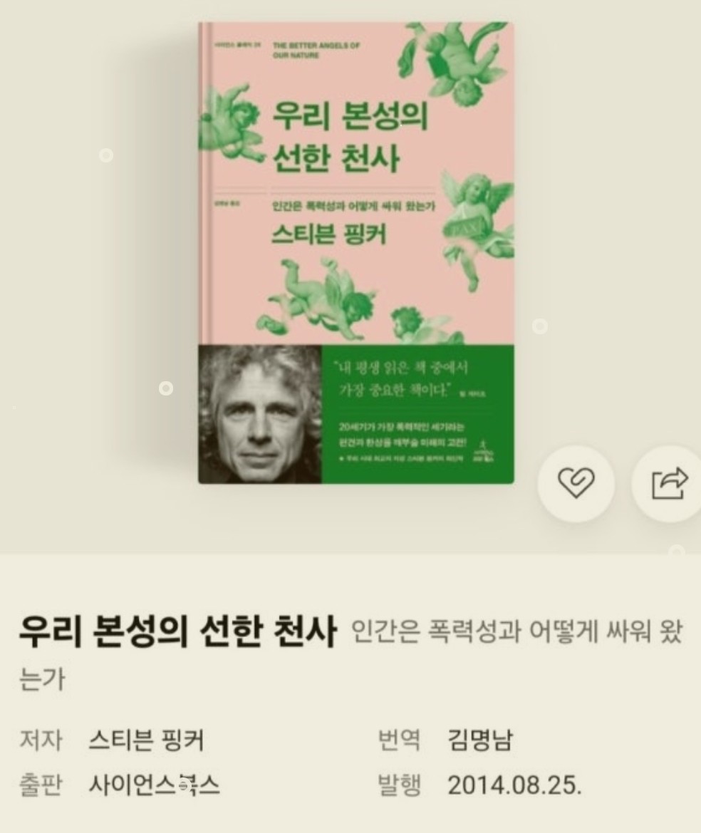 책 제목의 핵심인 ‘선한 천사’는 인간 내면에 존재하는 폭력을 억누르는 심리적·도덕적 힘을 상징한다.