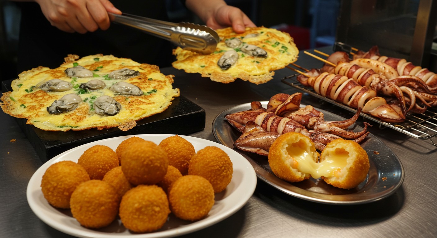 - 굴, 달걀, 채소를 함께 부쳐 만든 야시장 명물